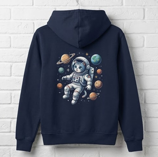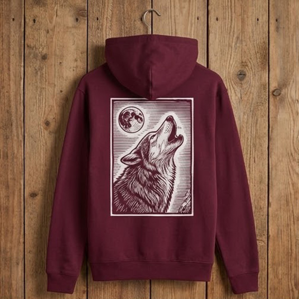 Praktyczna wskazówka: kaptur może lekko zasłaniać górną część nadruku na plecach, dlatego przy nadruku „na plecy” zwykle warto umieścić projekt odrobinę niżej niż w bluzach bez kaptura.