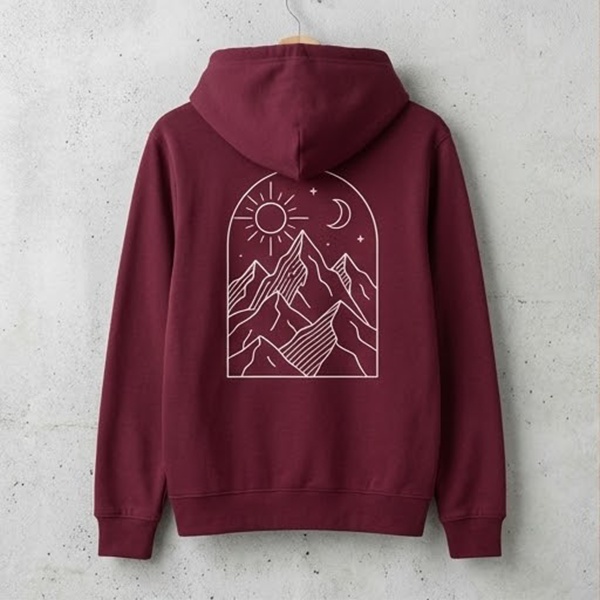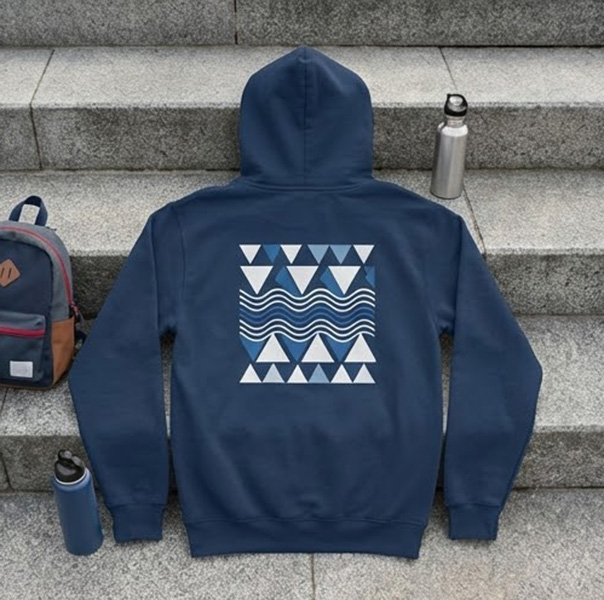 Najbezpieczniejszy „duży” nadruk to plecy. Na przodzie bluzy z kapturem często jest kieszeń kangurka, więc lepiej planować nadruk wyżej (na klatce) albo postawić na mniejszą grafikę/napis.