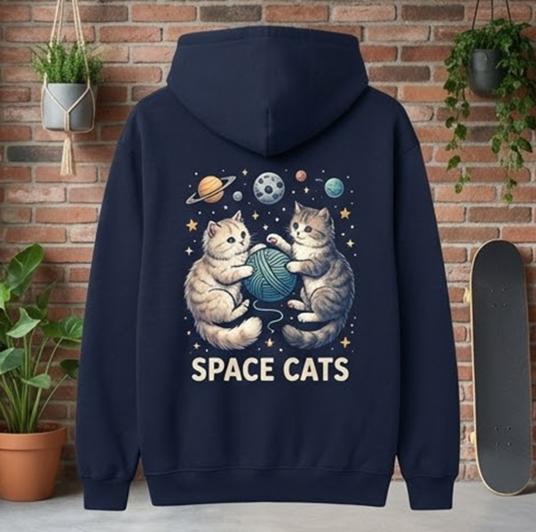 - Hoodie typu kangur – najbardziej „klasyczny” merch i casual; pamiętaj o kieszeni z przodu (może ograniczać duże nadruki na dole).