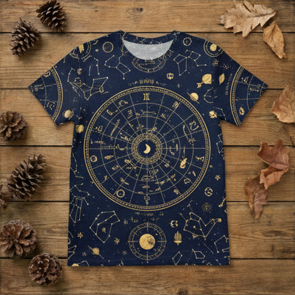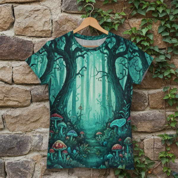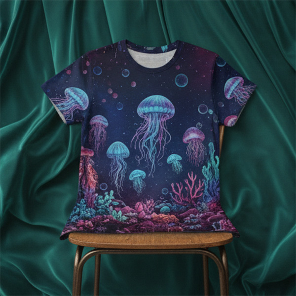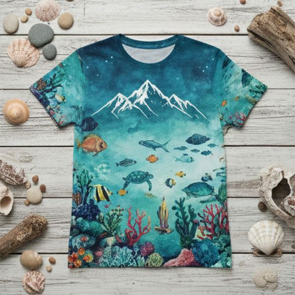 Na łączeniach (rękawy, dekolt) zgranie grafiki może nie być idealne – to normalne dla szytej odzieży all-over.