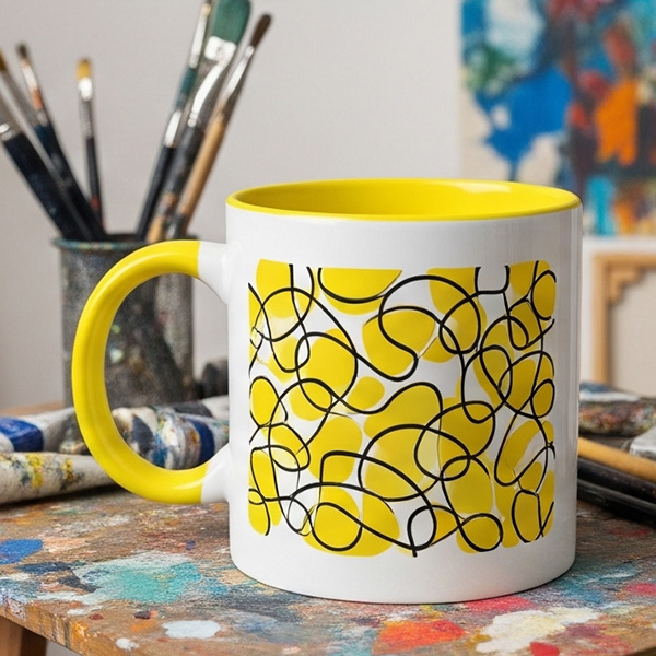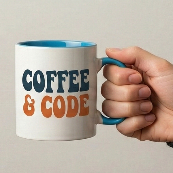 - Kubek z kolorowym wnętrzem/uchem – gdy chcesz dopasować projekt do barw marki lub zrobić ciekawszy „twist” prezentowy.