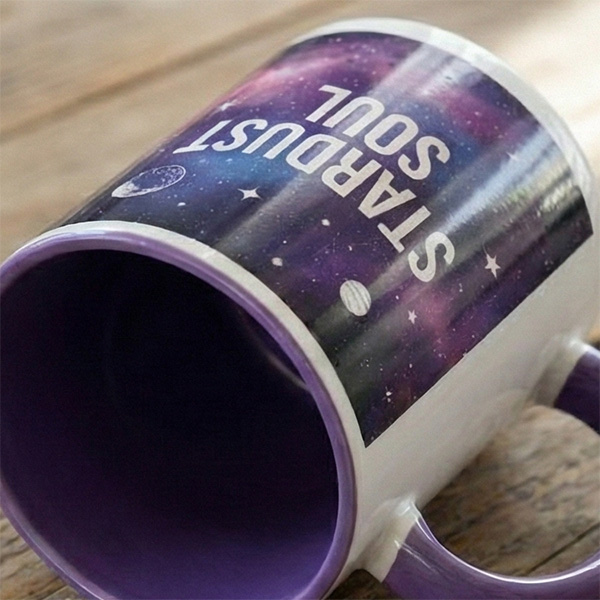 Stosowany jest termonadruk (termiczne wgrzewanie barwnika w powierzchnię kubka), dzięki czemu nadruk jest odporny na ścieranie i może być myty w zmywarce przy zachowaniu zaleceń użytkowych (delikatne programy, unikanie agresywnych detergentów).