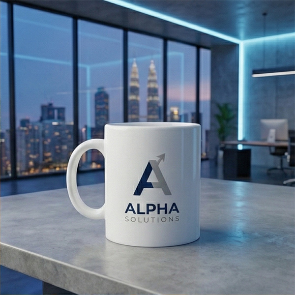 Najpewniejszy schemat to: logo w czytelnym miejscu + krótki dopisek (adres strony/hasło). Dobrze działają proste projekty o wysokim kontraście – kubek ma małą powierzchnię, więc czytelność wygrywa z drobnymi detalami.