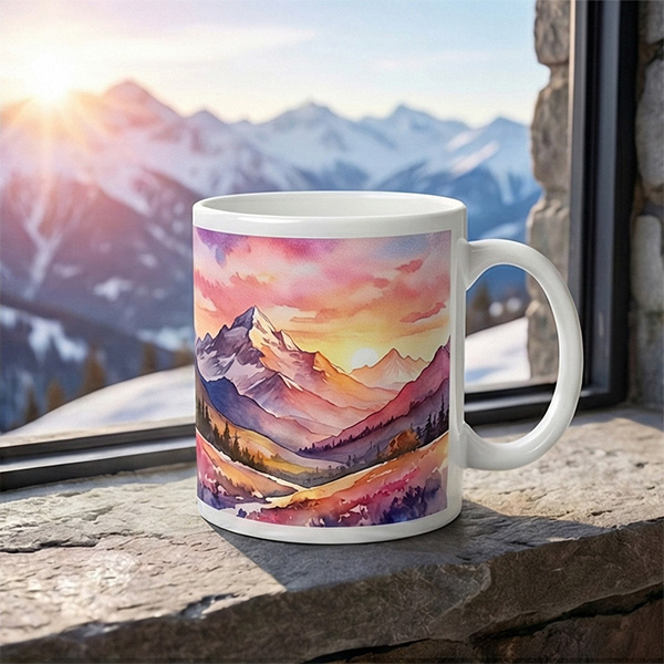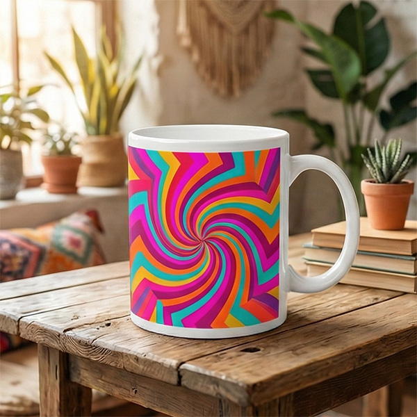 Tak, możesz umieścić do trzech niezależnych grafik albo zrobić jeden nadruk dookoła kubka.