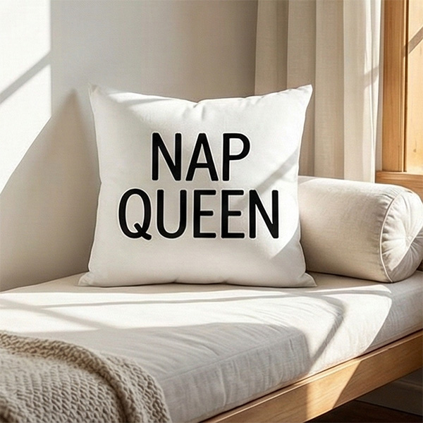 Tu wygrywa prostota: wyraźna typografia, mocny kontrast, minimalizm. Jeśli projekt ma drobne litery lub cienkie linie, powiększ elementy, bo poduszka zwykle jest oglądana z dystansu.